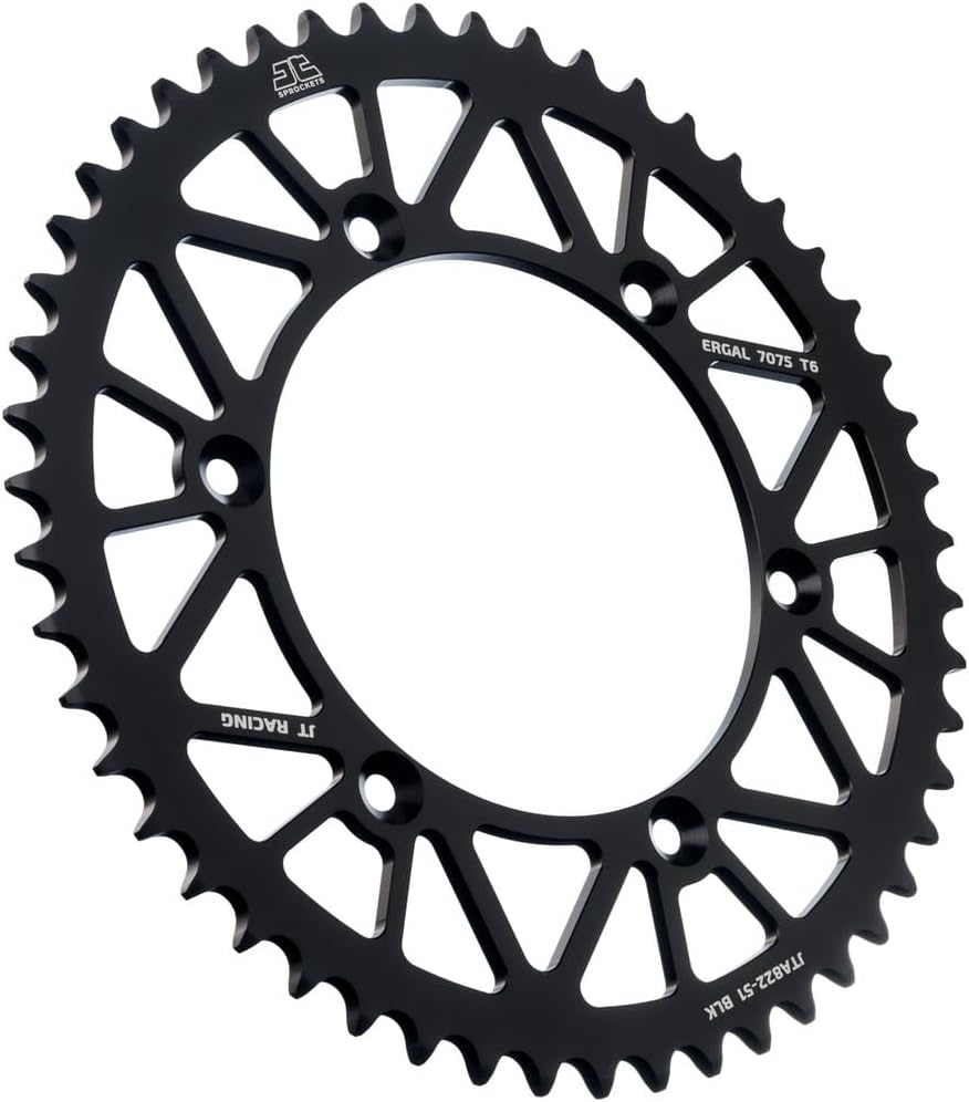 JT Sprockets is proud to introduce the new Racelite range of anodized 7075-T6 aluminum competition sprockets. These new JT Racing sprockets are designed and engineered to withstand the extreme pro-race conditions, providing maximum strength and durability at minimum weight. Precision CNC machined to JT's uncompromising standards from certified 7075-T6 Ergal aviation grade aluminum alloy. The RaceLite range of competition sprockets features a full off road range, and also includes fitments for road sport bikes with a full selection of gearing options available. Available in a hard wearing anodized black, orange, red, or blue finish to compliment the color scheme on all the major manufacturers' motocross and enduro bikes, and for the most popular Supersport and Superbike road race machines.