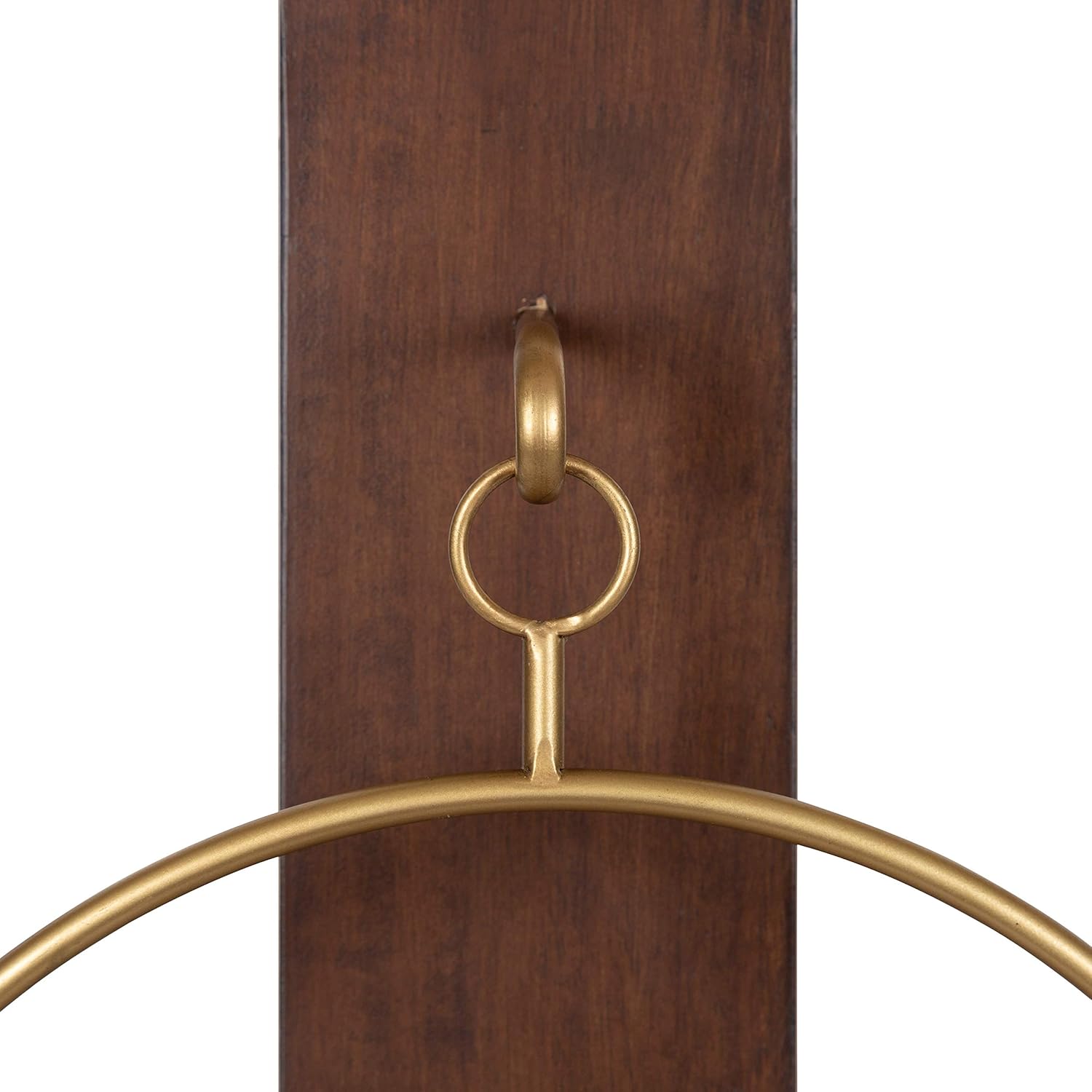 Light up your home with a wall sconce that brings warmth and dimension to any space. The Maxfield wall sconce from Kate and Laurel takes inspiration from midcentury modern design, with a warm, walnut finish on its base and a lovely gold finish on its hanging ring. The design also incorporates minimal lines and resilient construction, with the base composed of robust wooden material and the hanging ring featuring a resilient metal. The Maxfield wall sconce also includes a removable glass cylinder over the round base, securing whatever decorative accent piece you choose to display on the Maxfield sconce. With a 3.5 inch diameter, the sconce's platform is excellent for small plants or adorable scented candles! The overall display dimensions of this sconce are 13 inches wide by 5.5 inches deep by 23.75 inches tall. The Maxfield wall sconce's dimensions make it a fantastic display piece in your living room, bedroom, entryway, kitchen, or dining room. It hangs in only a matter of seconds with secure metal keyhole hangers discreetly attached to the back of the wood base.