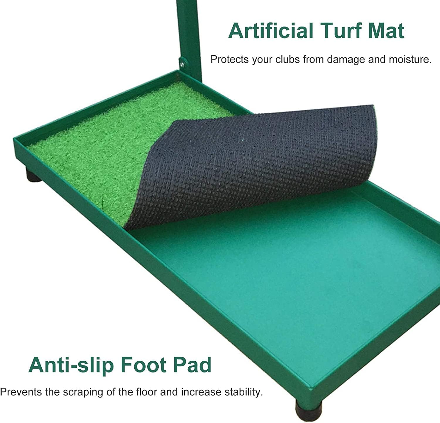 The Portable Golf Club Display Shelf is the best golf gift for golf enthusiasts to create a golf practice environment indoors, outdoors, or anywhere else. Organize your clubs, prevent them from damage. Its unique design can be perfectly integrated with home beautify, thus providing an opportunity for elegant display of sports equipment.Specification:- Name: Golf Club Organizers- Material: Metal+Wood- Size: 50×27×72cm (19.7×10.6×28.3in)- Weight: 5kg/11lbsAdvantage - The frosted antiskid base prevents the scraping of the floor. suitable for indoor and outdoor use.- It was made from metal and wooden board, strong and durable.- Easy to access and set up.- The bottom plate is stamped formed by thick iron, corrosion resistance.- Organize your clubs, prevent them from damage. Suitable for all kinds of playing places.- The frosted antiskid base prevents the scraping of the floor.Package:- 1× Golf Storage Rack (Golf Clubs not Included)Notice:- Due to manual measurements,please allow 1-2cm error and make sure you don't mind before ordering.