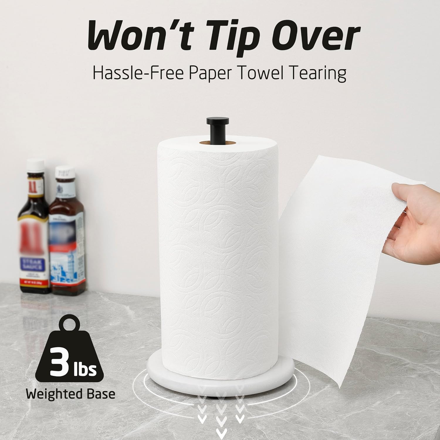 Kitchen Pot Filler Folding Faucet and Paper Towel Holder Combo: KES Kitchen Pot Filler Folding Faucet Brass Double Joint Swing Arm Sink Faucet Articulating Wall Mount and Paper Towel Holder Kitchen Standing with Marble Base for Standard or Jumbo-Sized Rolls Matte Black.