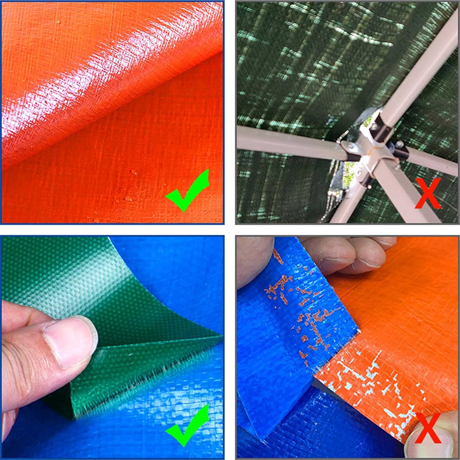 Features: * Healthy and environmentally friendly material, blue upwards for sun protection, orange downwards for waterproof. * It has the characteristics of waterproof, sunscreen, cold resistance, aging resistance, folding resistance, easy storage, not hard when cold, soft and light, suitable for all kinds of buildings, trucks, enterprises, seaports, etc. Specification: Name: Polyethylene PE rainproof cloth Color: blue/orange Weight: 160g/㎡ Thickness: about 0.32mm Material: Brand new polyethylene (belonging to plastic material) after high temperature folding, smooth cloth surface, easy to use, double-sided plastic coating Note: * Please note that due to the creases on the edges, the final size will be slightly smaller than the specified cut size. Products Include: 1x Tarpaulin
