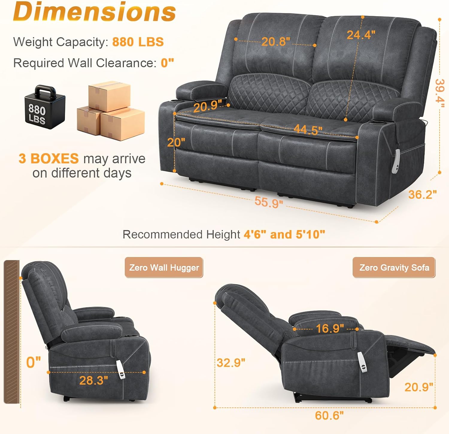 | Assembly Instructions Description | Quick Installation: Our loveseat recliner sofa comes with a pre-assembled design. The installation requires no tools and can be quickly completed by following simple, easy-to-understand instructions, significantly saving you time and cost. |