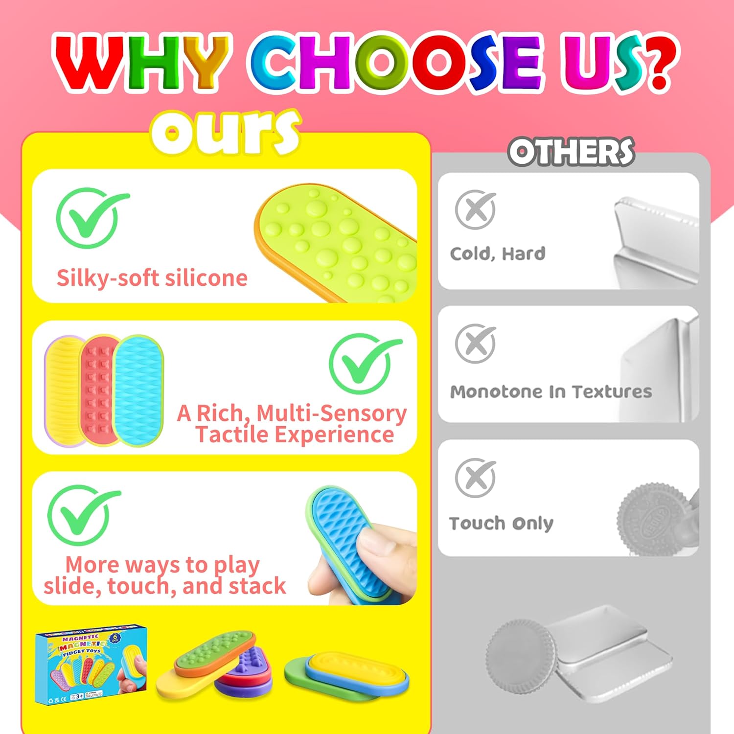 Silent magnetic sliders for quiet stress relief. Dual-textured, pocket-sized. Helps adults focus, kids calm, and supports sensory needs. Smooth, discreet, always ready.