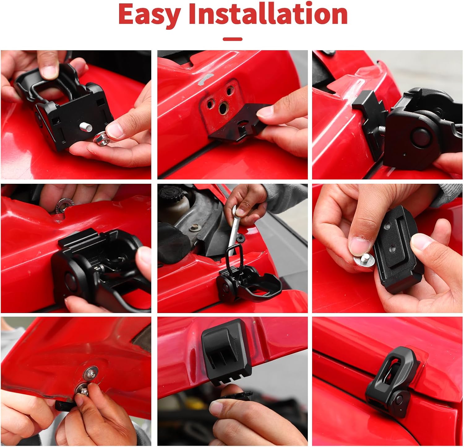 /b>Because the same model car may be differently produced in different country. Please ensure the part of your car like our picture shows.SQQP have other universal interrior accessories,please browse our store in detail, You will find more automotive accessories to your satisfaction,thank you! Company Ideas: SQQP offers a wide range of accessories to enhance and upgrade both the look and function of your vehicle.We sincerely appreciate your decision to purchase our products, we always committed to providing the high-quality, safe automotive decorative products and the excellent, professional and customer service. Item Description:Fitment: Compatible with Jeep Wrangler JK JKU JL JLU & Gladiator JT 2007 2008 2009 2010 2011 20122 2013 2014 2015 2016 2017 2018 2019 2020 2021 2022 2023 2024 2025+. Condition: 100% Brand NewMaterial: Stainless Steel + aluminum alloy Color:Blak AFeatures:-Made by professional manufacturer,quality assurance.-Flag pattern dramatically makes the exterior to be eye-catching.-Adjustable, sturdy.-Reduces hood flutter.-Aluminum build with stainless steel hardware-Come with installation toolsInstallation Method:Install simply with basic hand tools and requires no drilling; Attention:Because the same model car may be differently produced in different country. Please ensure the part of your car like our picture shows.Package Include:1 pair of Hood Latch SQQP have other universal interrior accessories,please browse our store in detail, You will find more automotive accessories to your satisfaction,thank you!