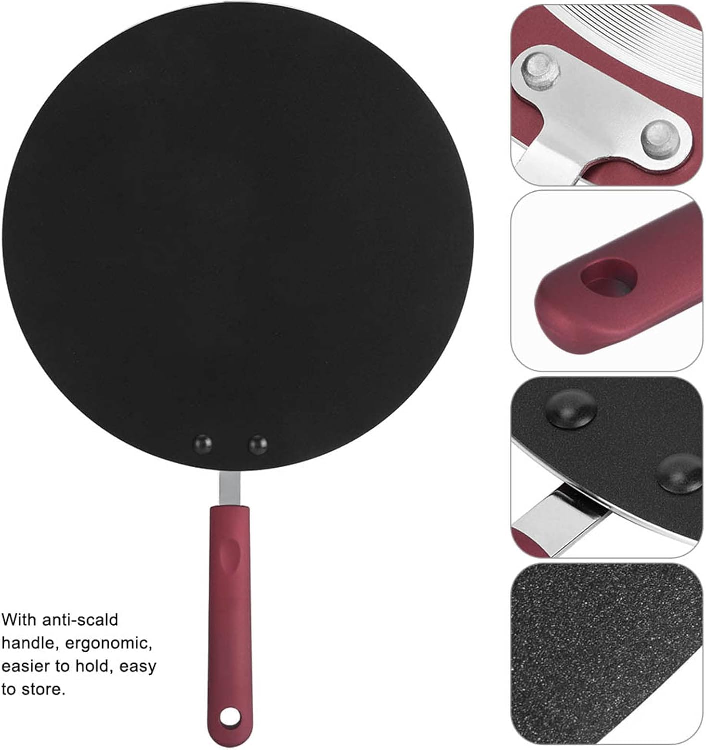 Item Type: Frying Pan Material: Aluminium AlloyColor: As shown in the picturePan Diameter: Approx.30cm/11.81inHandle Size: Approx.16x3cm/6.3x1.2inWeight: Approx.941g/33.2ozApplicable Stove: Fuel gas cookers, coal gas stove, etc open fire.Package List:1 x Pan 1 x Handle1 x Brush 3 x AccessoriesNote:1. Please allow 1-2cm error due to manual measurement. Thanks for your understanding.2. Monitors are not calibrated same, item color displayed in photos may be showing slightly different from the real object. Please take the real one as standard.