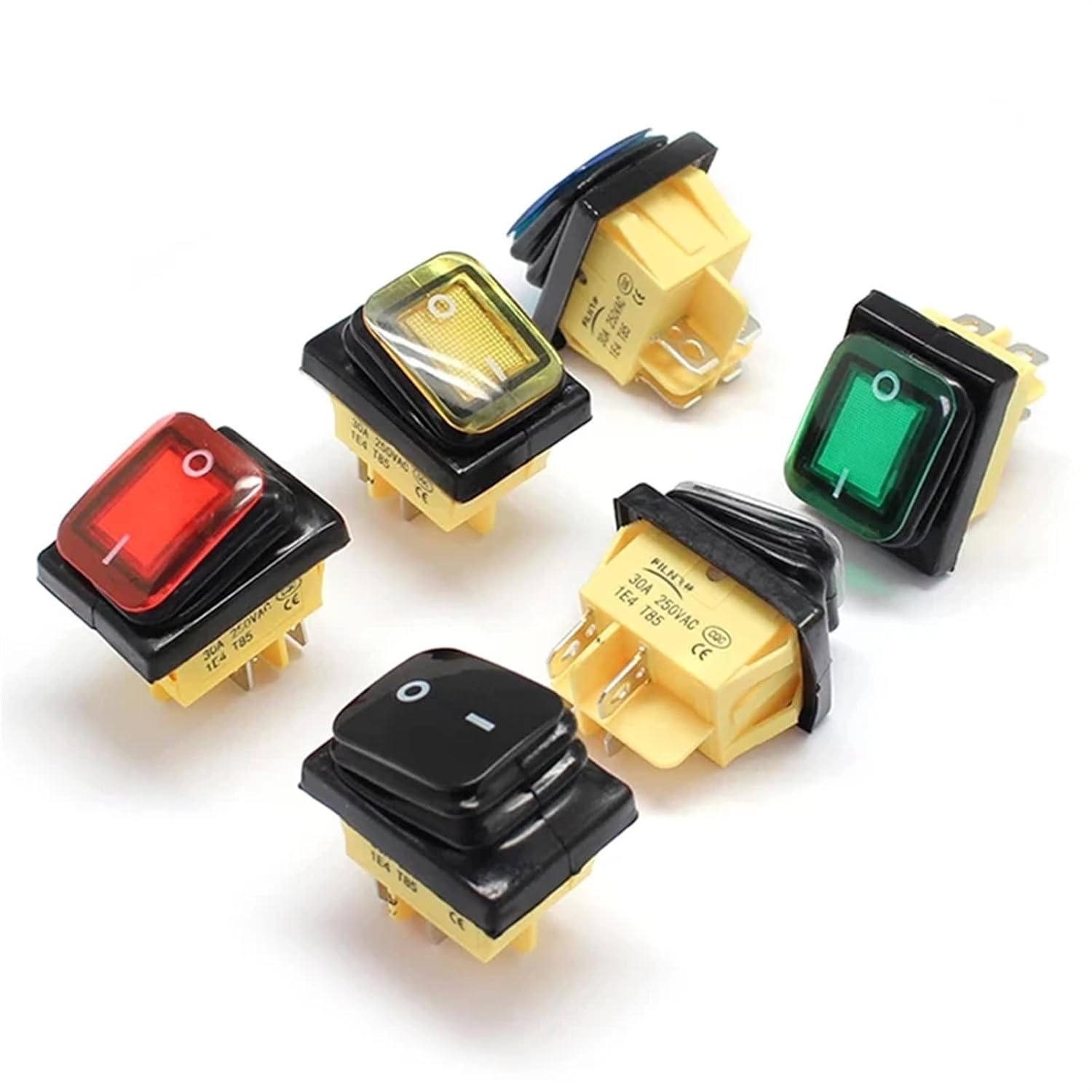 ON OFF 30A 12V 24V LED Heavy Duty 4 Pin Snap In DPST IP67 Sealed Waterproof T85 Auto Boat Marine Toggle Rocker SwitchLED Voltage: 12V-24V LEDSwitch Function: ON-OFFSwitch Rating: 30A 250VACPanel Mounting Hole size: 30x22mm and Snap-inSingle color Packing: Each Pack include 2 Pcs SwitchMixed color Packing: Red+Yellow+Blue+Green+White+Black Each One Piece==========Current : 30AMaterial : PlasticCertification : CCC,ce,CQC,ROHSSwitch Type : Rocker SwitchModel Number : KCD4-0121-21_012-024Features : WaterproofItem Type : SWITCHESIs Smart Device : noCertification : CESwitch Rating : 30A 250VACLED Voltage : 12-24VLED Color : Red,Yellow,Blue,Green,WhiteSignle Color Pack QTY : 2 PCS