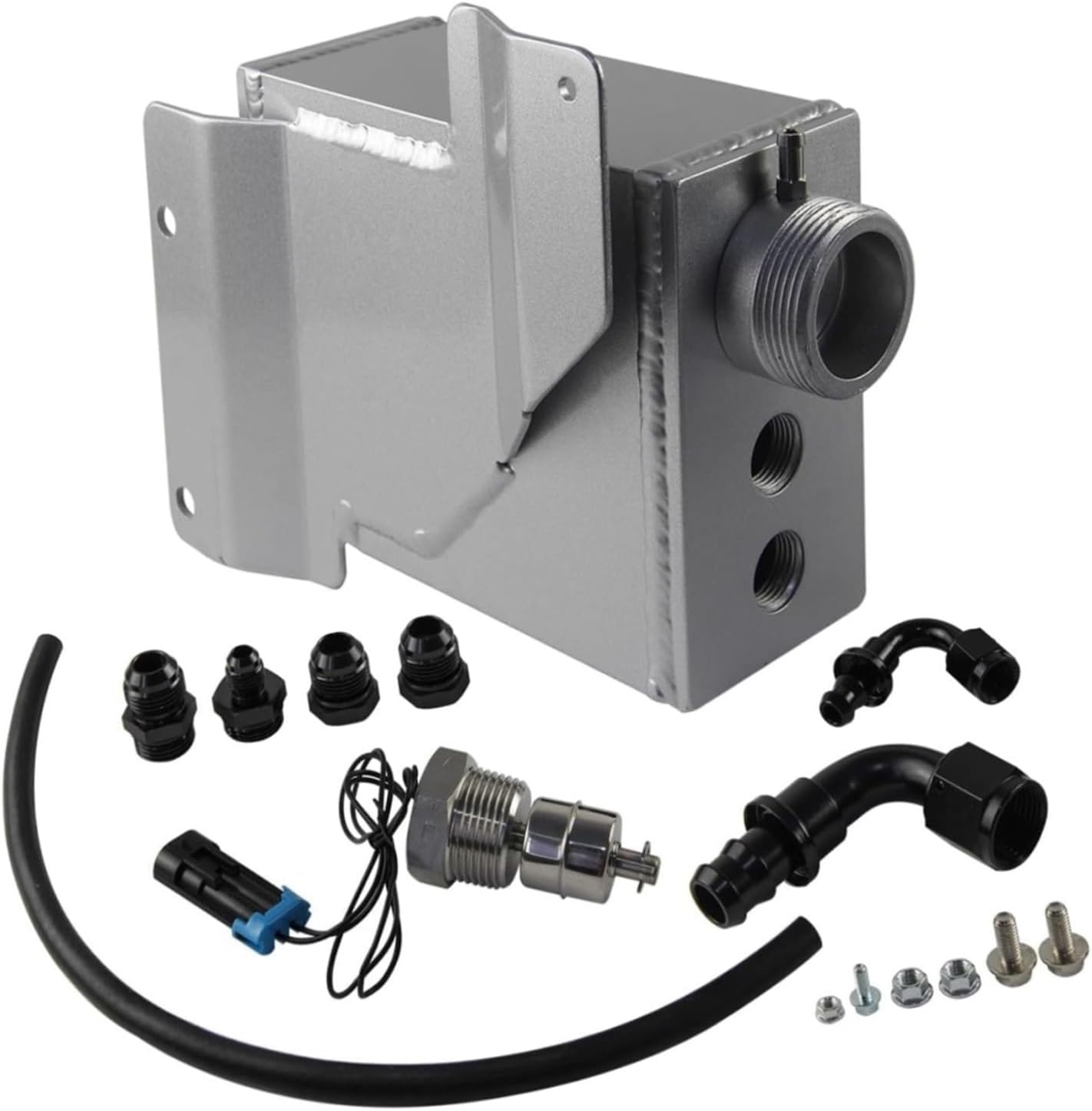 APPLICATION:For 2013-2018 for Dodge for Ram 2500 3500 6.7L for Cummins for Diesel V8 Note:Specifically designed for 2013-2018 for Ram trucks with 6.7L for Cummins enginesThis product is ONLY designed For Use With 2nd Gen Swap Compound turbos onlyDESCRIPTION:Specifically designed for 2013-2018 for Ram trucks with 6.7L for Cummins enginesHigh-quality construction for durability and longevityEfficient solution for managing coolant levelsRobust design capable of handling heavy-duty applicationsDirect-fit design for easy installationImproves functionality and reliability of the cooling systemHelps coolant leaksEnhances the overall appearance of the bayIntroducing the Coolant Tank for 2013-2018 for Ram with 6.7L for Cummins , the ultimate upgrade to enhance your cooling system. Designed specifically for the 6.7L for Cummins , this coolant tank offers improved functionality and durability. With its high-quality construction and precise engineering, it provides a reliable and efficient solution for managing coolant levels. The tank features a robust design that can withstand the demands of heavy-duty applications, ensuring long-lasting performance. Installing this coolant tank is a breeze, thanks to its direct-fit design that seamlessly integrates with your for Ram truck. Say goodbye to coolant leaks and unsightly reservoirs, and enjoy a and reliable cooling system with the Coolant Tank for 2013-2018 for Ram with 6.7L for Cummins . Includes: Coolant TankCoolant Level 6AN 120 deg to Hose Barb Fitting10AN 90 deg to Hose Barb Fitting10AN to 7/8"-14 straight male black with o-ring6AN to 7/8"-14 straight male black with o-ring7/8"-14 hex socket with o-ring (qty 2)HoseMounting hardware