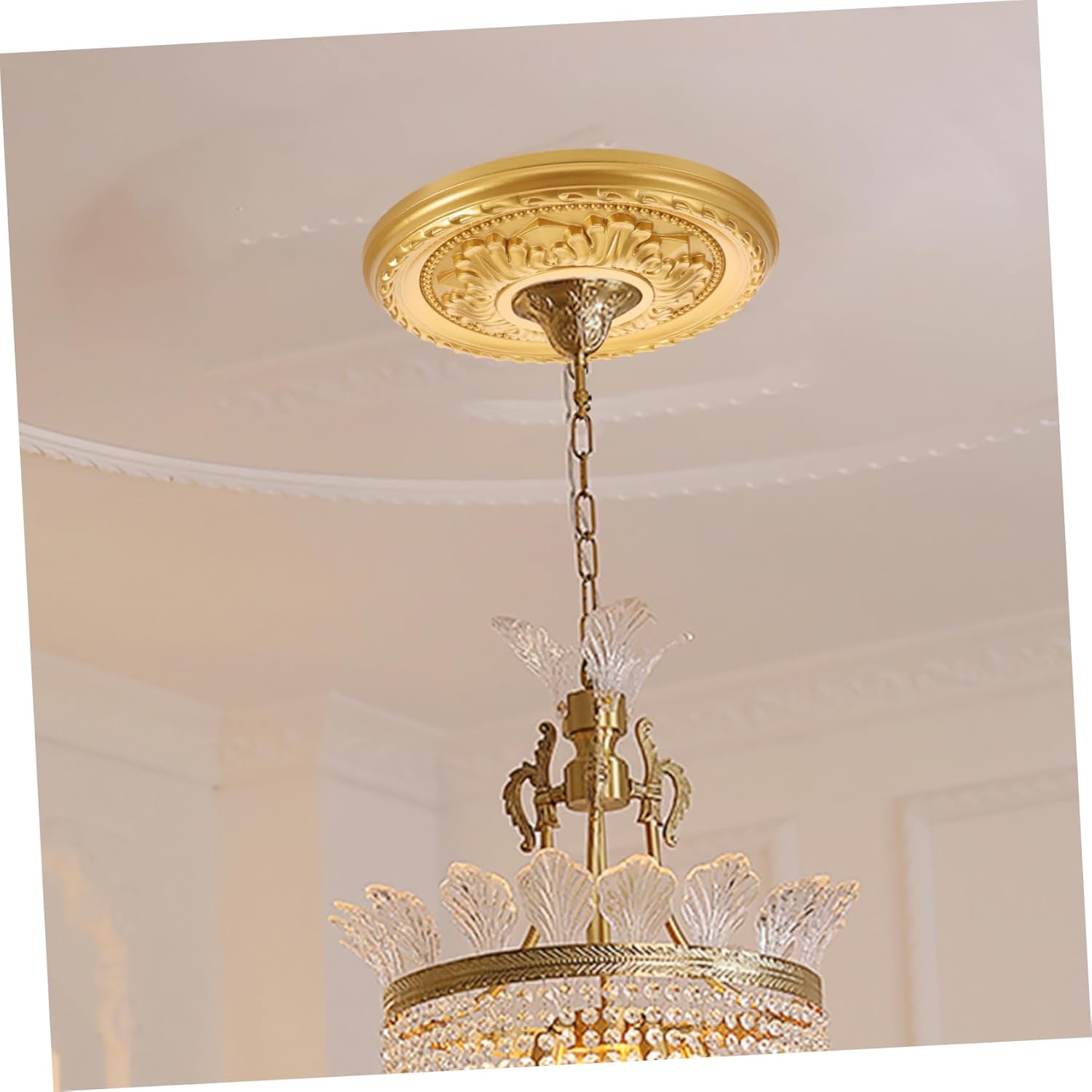 Package Include 1 x Ceiling Medallion Features -Size:31.00X31.00X2.50cm/12.18X12.18X0.98in battery picture lights for wall -Color:Golden ceiling medallion plastic -Material:PVC lighting ceiling ring -Constructed from pu and gypsum materials, this medallion is not only but also easy to maintain, ensuring long-lasting beauty and functionality chandelier medallion. -Designed to provide excellent lighting coverage, this medallion ensures that your space is well-lit, creating a bright and inviting atmosphere ceiling light cover -The elegant gold finish and round design of this ceiling medallion add a touch of sophistication to any interior decor, making it a stylish focal point in any room ceiling fan light cover. -This versatile medallion is for a wide range of settings, from residential homes to commercial spaces, offering endless decorative possibilities to enhance any environment ceiling medallion replacement. -With a user-friendly installation process and a comprehensive guide included, setting up this medallion is straightforward, making it accessible for anyone to install ceiling medallion kit.Goods Descriptionceiling fan light covers The round shape adds a sophisticated touch to any space.split ceiling medallion Transform your ceiling with our steel-reinforced PU medallion, featuring a luxurious gold finish.lighting ceiling medallion Suitable for various settings, it offers bright illumination and includes an easy-to-follow installation guide.ceiling light medallion Crafted from pvc materials, this medallion is both and easy to clean