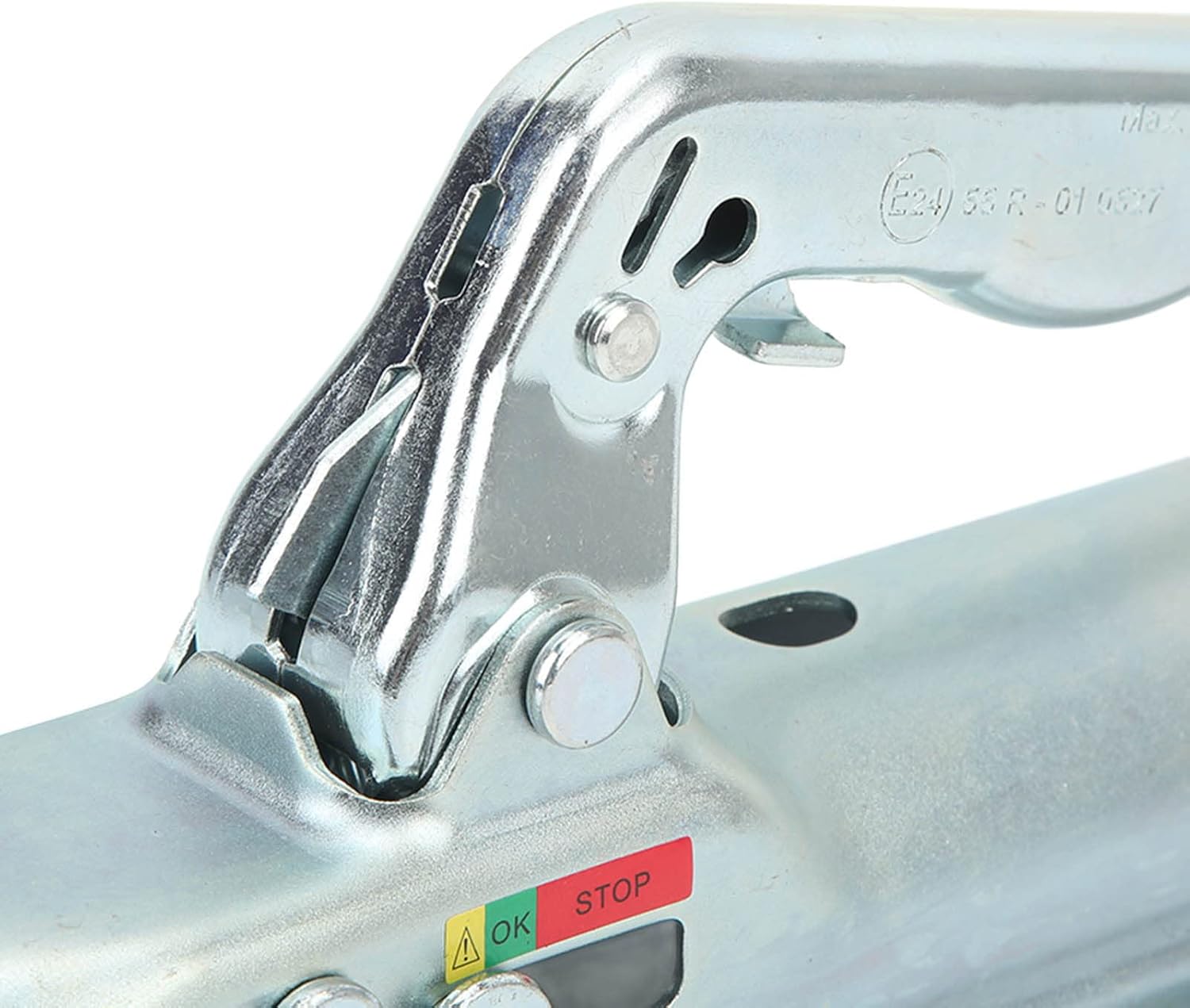 1. Feature: This straight tongue trailer coupler is designed with 2in hitch ball head, applicable for 2in round tube, and it's Emark24 approved.2. Unique Design: Designed with a spring loaded release, rugged riveted tongue lock, this trailer hitch coupler can easily be adjusted to ensure a snug fit on the trailer ball.3. Material: The trailer coupler is made of forged steel galvanized material, has a capacity of 800kg, has high strength, tough, wear proof, impact and .4. Practical: The trailer coupler attaches securely to the trailer hitch for a long time, with a and protective galvanized finish to resist rain, dust and .5. Fine Workmanship: Professional manufactured, exquisite workmanship with unique design, ensure stable performance and high reliability.Spec:Item Type: Straight Trailer CouplerMaterial: Forged steel galvanizedApplicable Ball Head: Approx. 2in/5.08cmRound Connector Size: Approx. 2in/5.08cmLoad Capacity: Approx. 800kg/1763.70lbApprove: Emark24Package List:1 x Straight Trailer Coupler