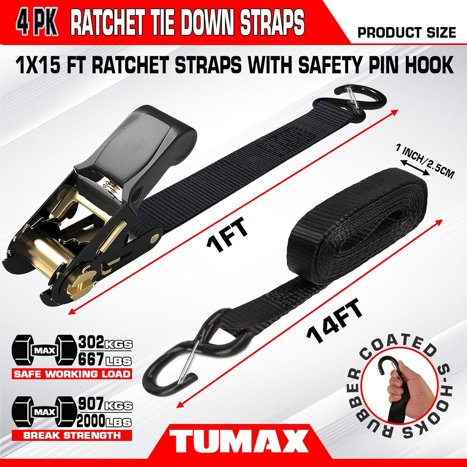 | Included Components | Retractable Ratchet Tie Down Straps, loops |