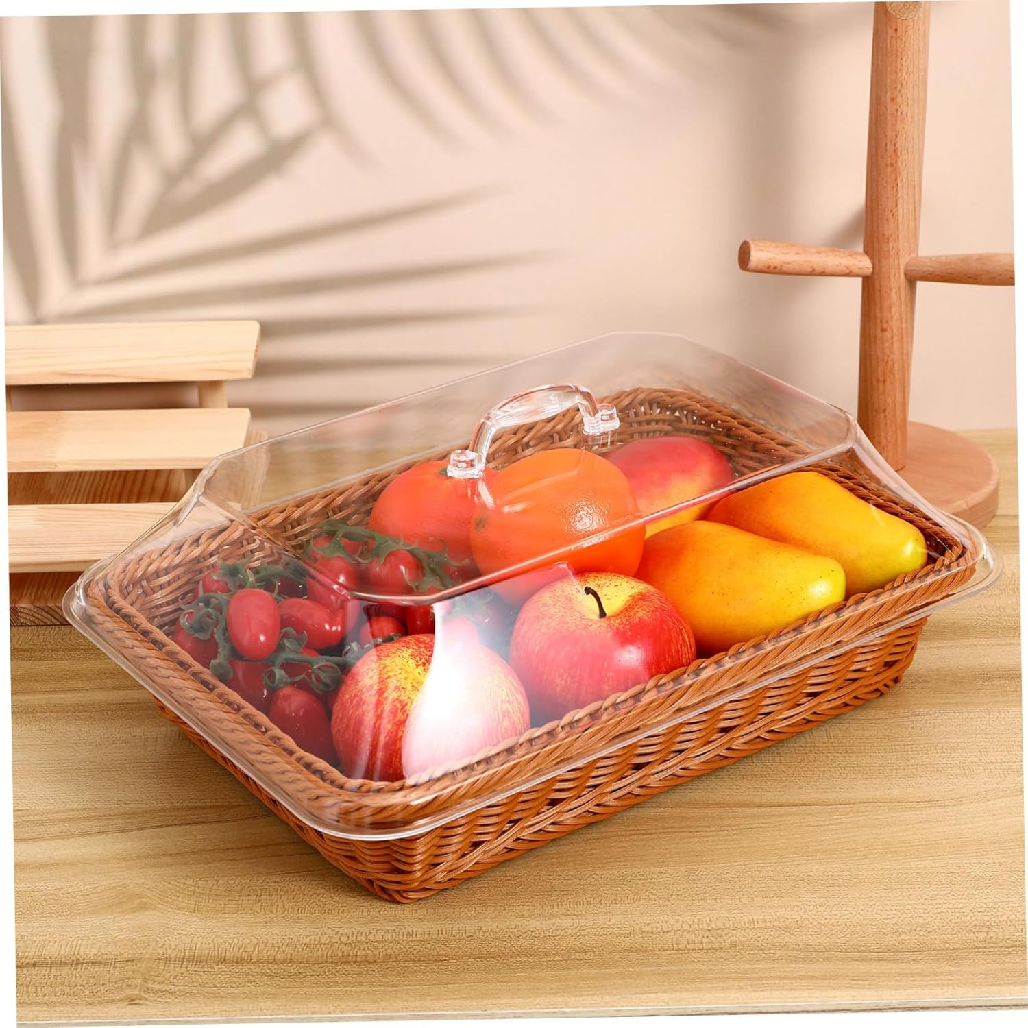 Package Include 1 x Basket 1 x Lid Characteristics -Material: Plastic, acrylic food serving baskets -Color:Light Brown bread serving basket -Product Info:Imitation rattan woven basket -Lid Size: About 36.00X26.00X8.00cm/14.15X10.22X3.14in rattan snack basket -Basket Size: 35.00X25.00X8.00cm/13.76X9.82X3.14in woven breads baskets -The rectangular woven basket has beautiful lines, neat edges, and fine workmanship snack baskets. -The wicker bread basket is suitable for serving or displaying muffins, bread, scones, fruit, candies, cookies, and more imitation rattan bread basket with lid. -Hand-woven basket in classic colors for a rustic vintage outlook household bread basket. bread serving baskets -The woven basket will not rust and crack, it's an ideal container for storing items fruit basket for kitchen. -The matching clear lid is made of strong acrylic to protect the contents of the basket rattan candy storage basket.Goods Descriptionrattan - woven baskets The elegant vintage style also makes it a great home decor and housewarming gift.bread serving basket for table Are you looking for a professional and practical storage basket? If yes, your search can stop here! Our faux rattan bread basket is suitable for a home, restaurant, kitchen, fruit shop, picnic, or party