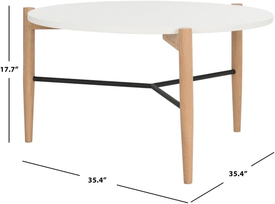 This contemporary round coffee table was designed to celebrate the spirit of the inspiring utopian designs of mid-century architects. A modern investment, its smooth White surface and natural wood finish blend seamlessly into any sophisticated space.