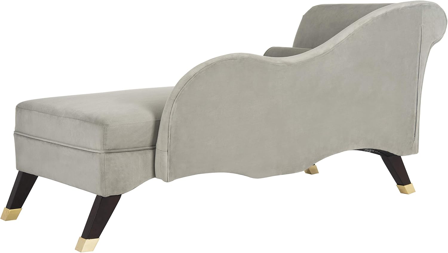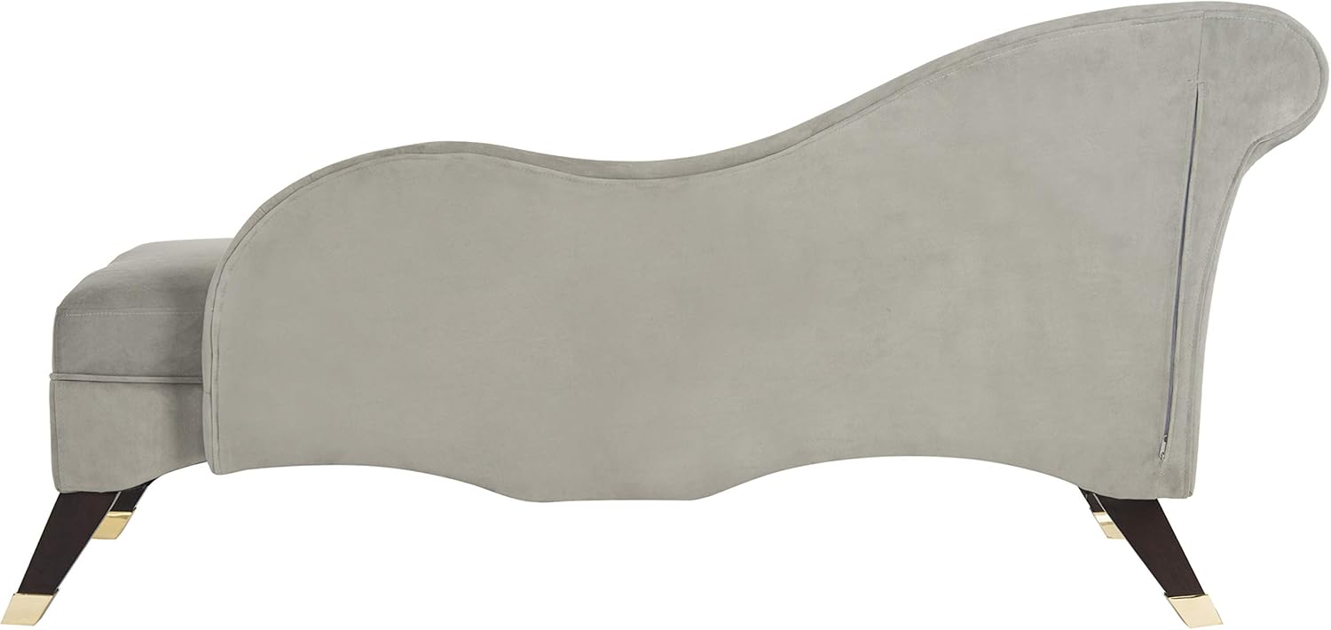 Designed for tastemakers who embrace the art of living, this contemporary velvet chaise brings the aura of glamour to the gracious home. Upholstered in a luxe grey hue, its seductive curves, gold Cap legs and posh pillow make it a must-have for designers.