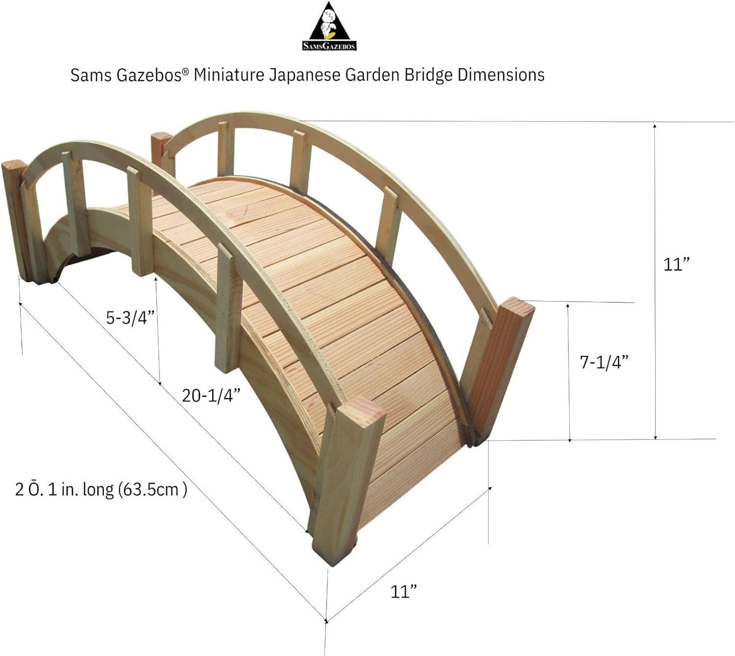 SamsGazebos Miniature Japanese Wood Garden Bridge 25 Inches Unfinished