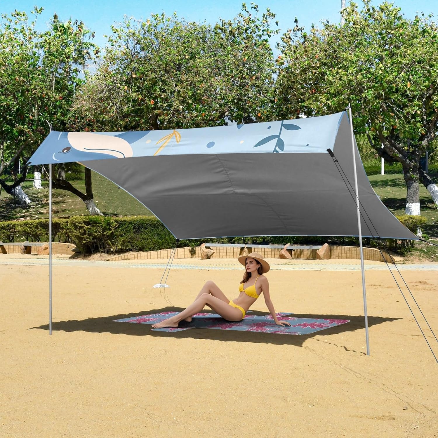 Camping Sun Shelter, Beach Tent Portable Beach Sun Shade Outdoor Canopy for Camping Trips Fishing Picnic Washing instructions It is recommended to hand wash and wipe wash. wash with warm water less than 40 Celsius. Do not use detergents such as bleach. Features: Outdoor shade beach canopy for camping made of silver-plated oxford fabric. This awning for beach can keep you protected from harmful UV rays, ensuring a safe and comfortable experience outdoors. The beach sunshade has better windproof performance, making this beach tent more stable, so you don't have to worry about the beach tent being blown away when you are playing. Each beach tent is easy to set up, and you can set it up almost anywhere.You can relax on the beach, go fishing by the lake, or enjoy family time at the park. Perfect for friends, family and good times.