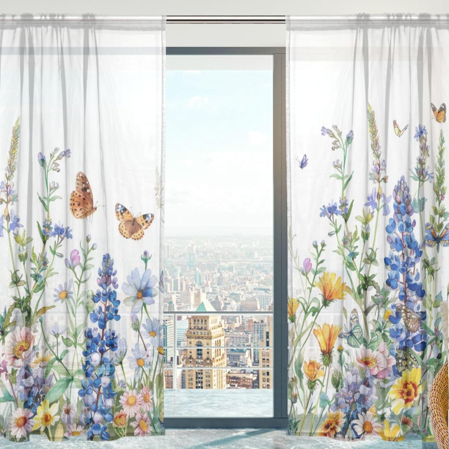 Personalized DIY pattern print design, brings an aesthetic feel that will better decorate your home with a graceful and pretty appearance These sheer curtains can provide good privacy and avoid outside views Detail: Printing Technology: Advanced Digital Printing Material:100% polyester Opening and Closing Method: Left and Right Bi-parting Open Performance: Shading(40%-50%),Smartly allowing natural light flowing into your room, while still providing privacyAdd style and elegance to your room, make a pretty soft and natural look to your windows Tips: Can be safely hand and machine washed,air dry,do not bleach