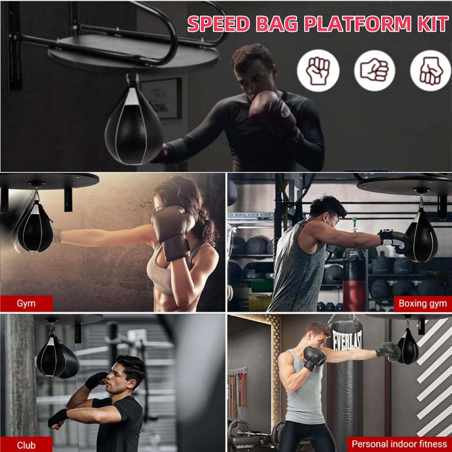 | Included Components | 1 wall-mounted frame 2 steel pipes 2 x Rotator 1 PE platform 1 speed bag bearing swivel 1 speed bag (10''x7") 4 expansion screws (M10x100mm) |