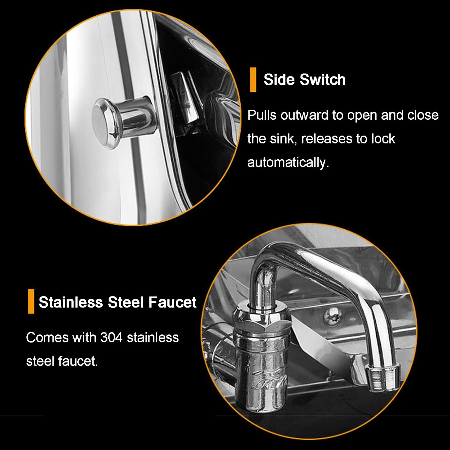 Introducing the Folding Sink with Cold Water Faucet, an ideal solution for those seeking convenience and space-saving functionality in various settings such as RVs, caravans, boats, and even small indoor areas. This wall-mounted hand wash basin is designed for versatility, making it perfect for outdoor events, camping trips, and worksite use. **Product Features:** - **Space-Saving Design**: This foldable sink is engineered to maximize space efficiency. Its compact design allows it to fit seamlessly into tight spots, ensuring you can enjoy the luxury of a sink without sacrificing valuable room. - **Easy to Clean**: Crafted from high-quality 304 stainless steel, the of this sink is exceptionally smooth, which helps minimize dirt accumulation and limescale build-up. Maintenance is a breeze, allowing you more time to enjoy your activities. - **Complete Set**: Each unit comes equipped with its own filter water sink and chain, along with a convenient cold water faucet. This ensures you have everything you need for efficient hand washing, enhancing hygiene wherever you are. - **Lightweight and Portable**: Weighing only 4.5 kg, this mobile sink is easy to transport, making it an nt choice for gatherings, outdoor events, or even as a reliable addition to your indoor setup. - **Versatile Use**: Whether you're setting up in your garden, enjoying a camping trip, or neng a practical solution for a worksite, this sink adapts to your needs, providing a reliable source of water for hand washing and cleaning. **Specifications:** - Overall Size: 37 x 37.5 x 39 cm (14.56 x 14.76 x 15.35 in) - Bowl Size: 30 x 30 x 8.6 cm (11.8 x 11.8 x 3.4 in) - Wall Thickness: 1 mm - Hole Cut Size for Water Drain: 41 mm (1.61 in) **Package Includes**: 1 hand wash basin with faucet and lid. Upgrade your space with this practical and stylish folding sink, perfect for enhancing your hygiene practices and optimizing your environment!