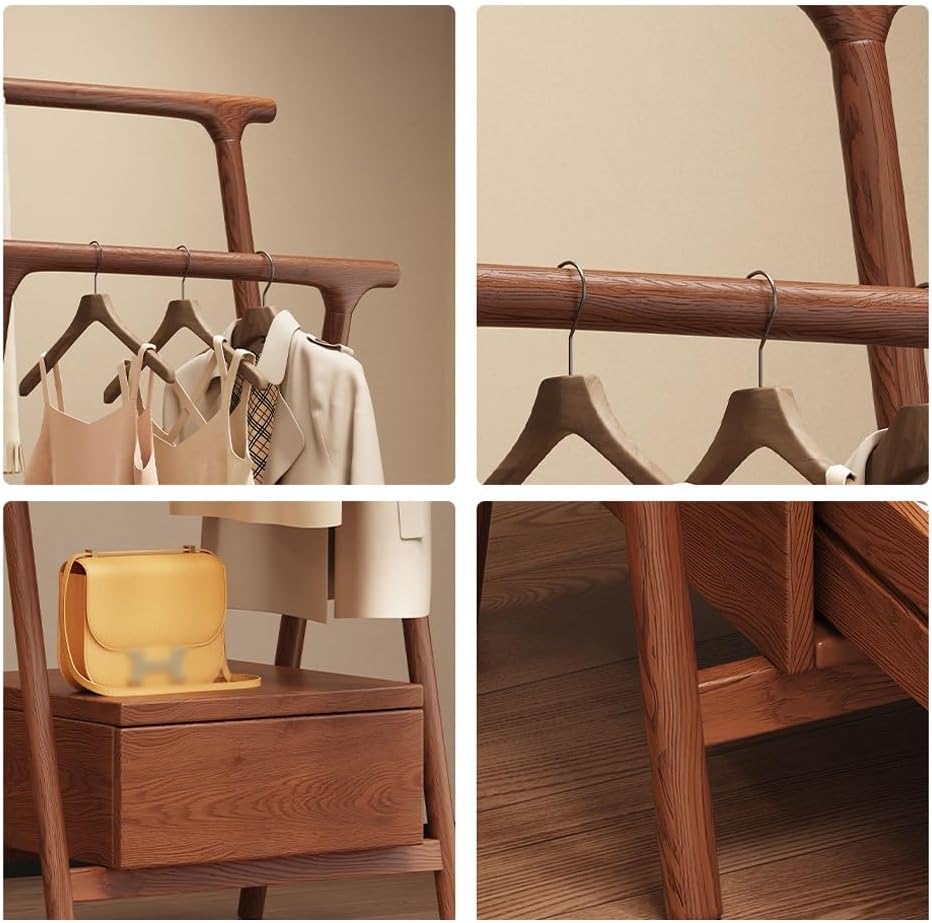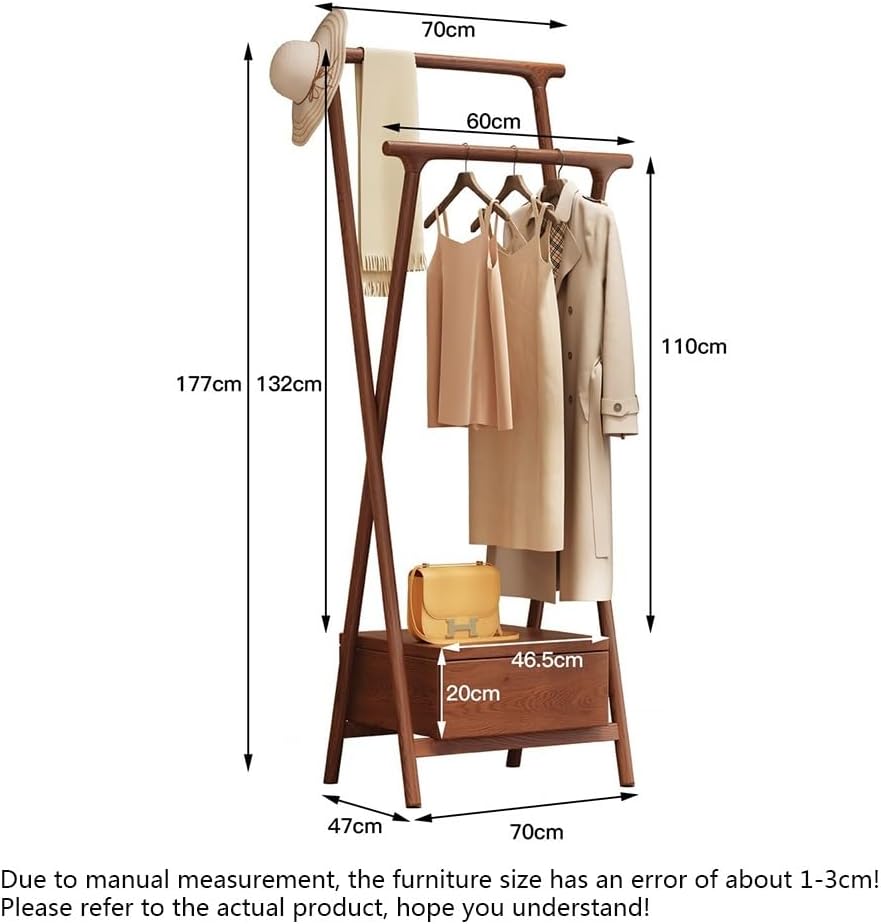 With it you can make your room much more neat and clean.Nmae: Floor Coat Rack Clothes RackMaterial: Solid WoodColor: WalnutUsage Scenarios: living room, study, dining room, etc.Packing List: 1 * Coat Rack( without hangers and other accessories)Notice:1. Due to different light and shooting angles, there may be slight color difference, please understand.2. Please confirm the color before purchasing.3. Products do not include products other than those pictured.4. Manually measure the size, there may be some small errors, please refer to the actual product, thank you.