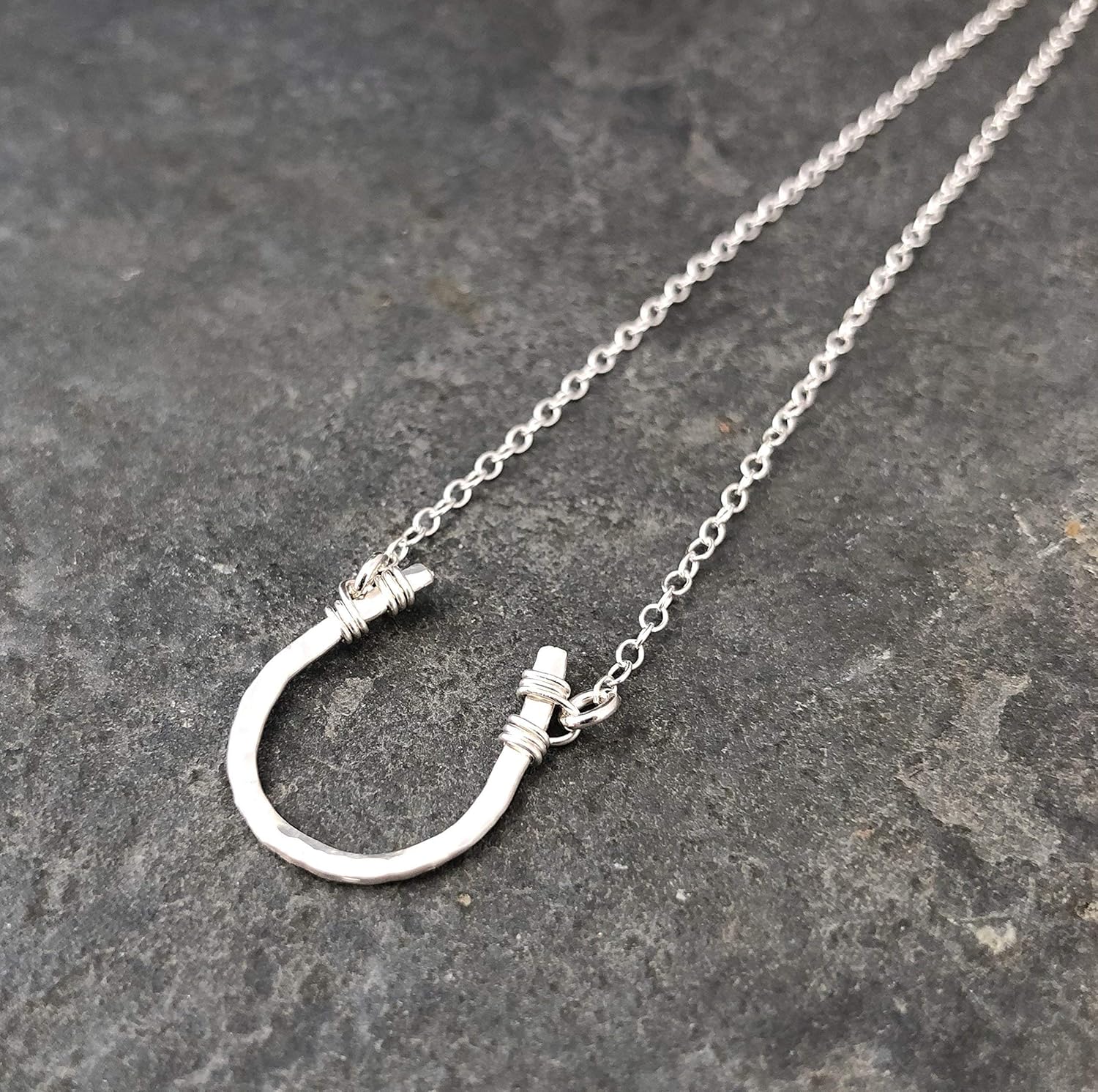A simple hammered sterling silver horseshoe is perfect for any cowgirl or city girl alike. Will it bring you luck? Doesn't hurt to try! The horseshoe is approximately 0.75 inches long, and is attached to petite cable chain and finished with a light weight sterling silver clasp. Available in multiple chain lengths - please select at checkout. Note this listing is for one necklace only. The photo including two necklaces is to show the variation in shape between handmade necklaces. This necklace is also available in gold-filled and rose gold-filled in our shop. Thank you for visiting Desert Studio. Please come back soon!