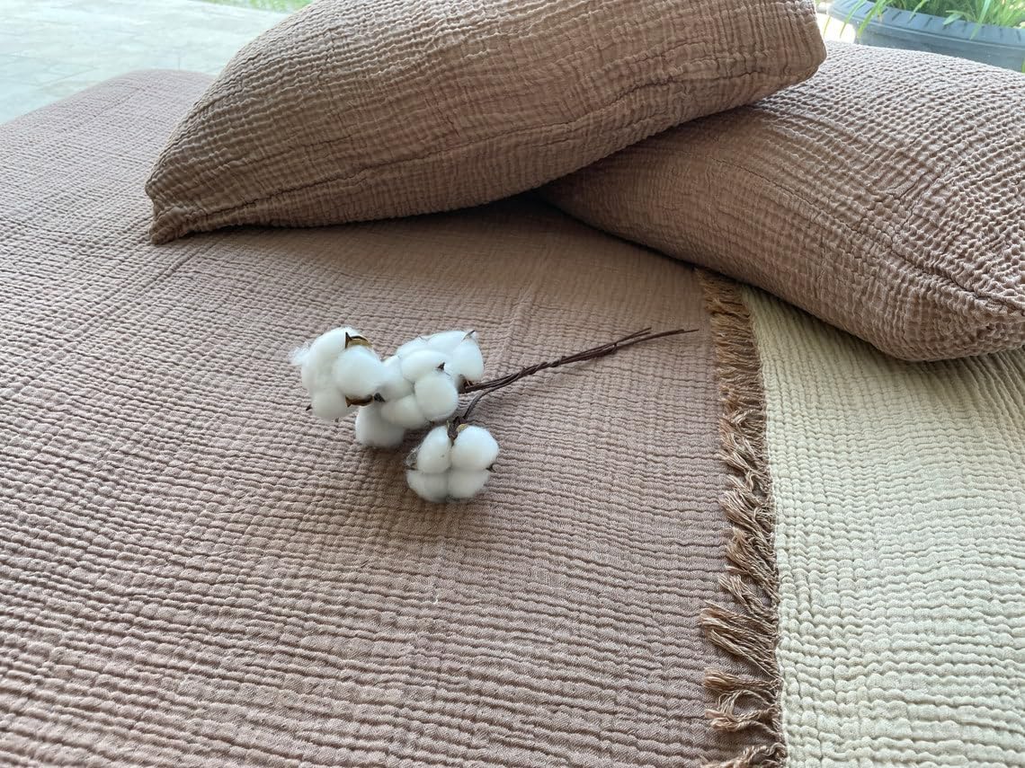 These shams made by hand, using the 4-ply gauze fabrication made of 100% Muslin Turkish cotton. Plus, it is durable, washable, reusable, eco-friendly, breathable, soft, comfortable, and unique gift for couple. Shams are available in different colors and sizes.