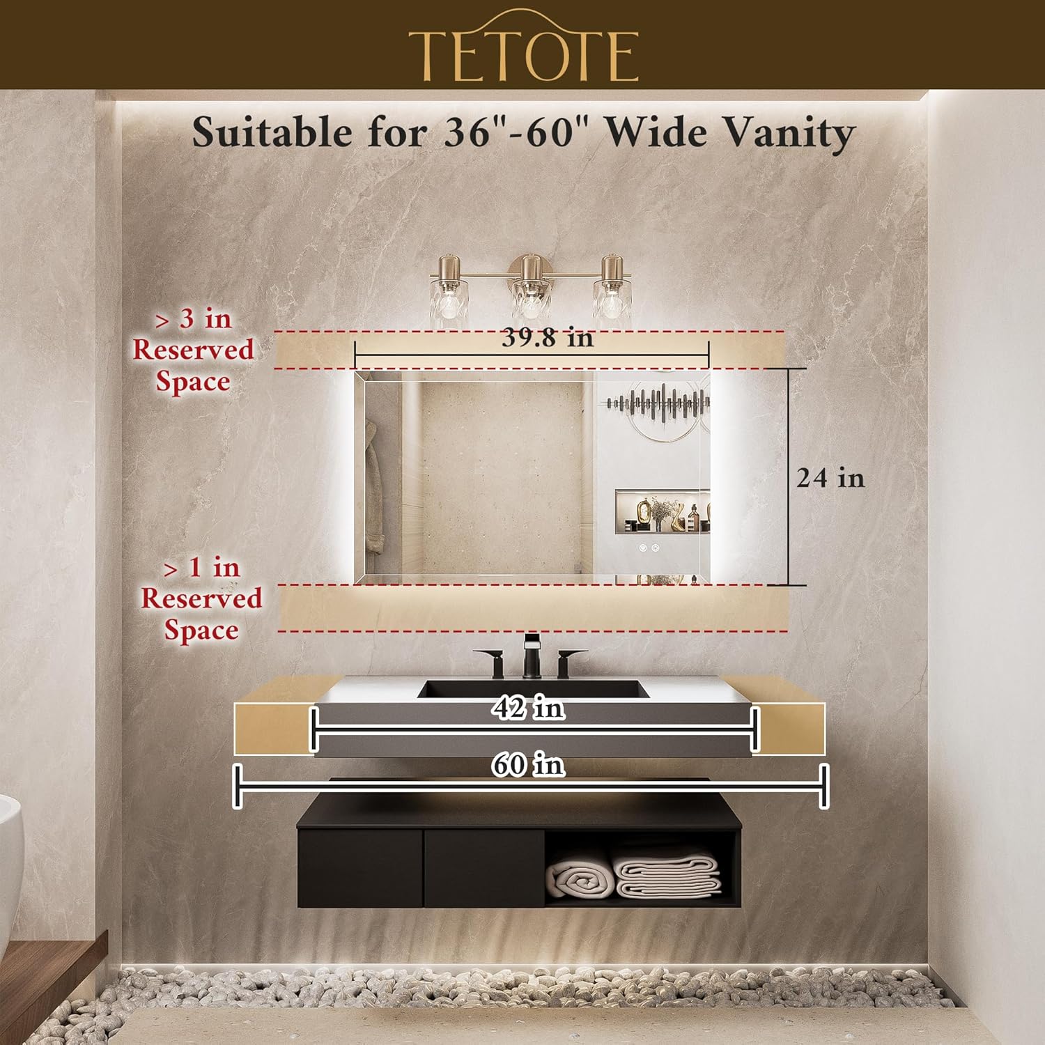 | Included Components | 40x24 Backlit Mirror Beveled Edge, French Cleat, Plug, Screw & Wall anchors, Users Manual |