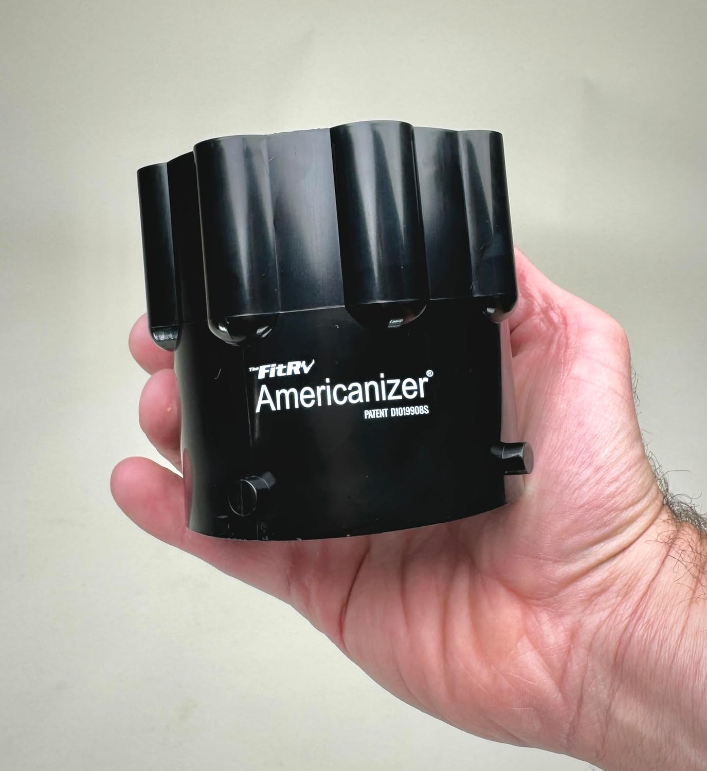 The Americanizer allows you to dump your cassette and portable toilets using regular RV sanitation and dump station fittings. Smells won't escape. Waste won't escape. Toilet contents will be contained from your cassette or portable toilet through your RV sewer hose down to the dump station opening. The Americanizer has been tested and is compatible with the pour spouts on Thetford branded cassette toilets and portable toilets. The other end of The Americanizer should be compatible with any standard RV sanitation accessory using lug fittings.