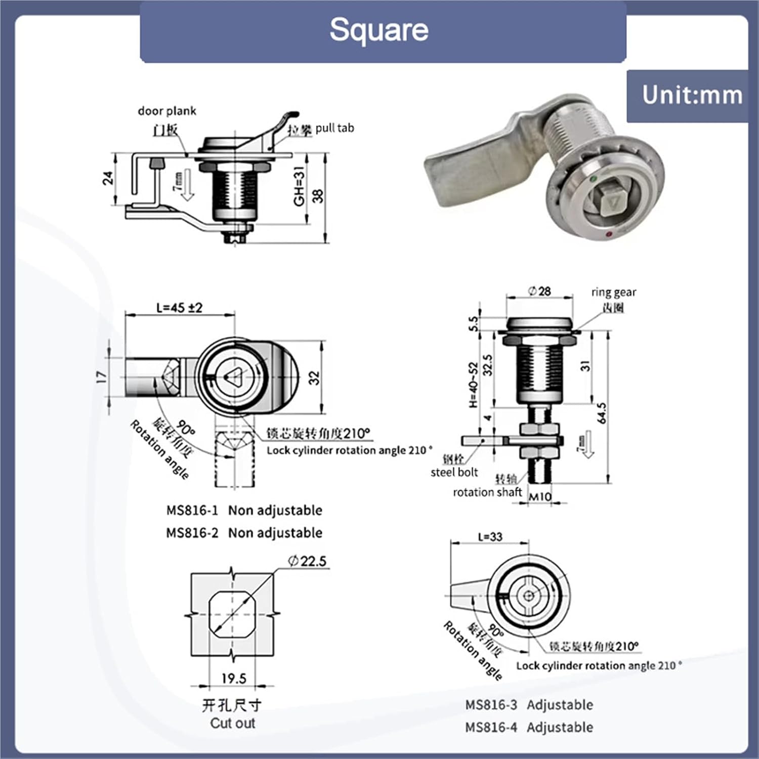 LatchesTriangular Telescopic Cam Lock Made Of 304 Stainless Steel 1Pcs