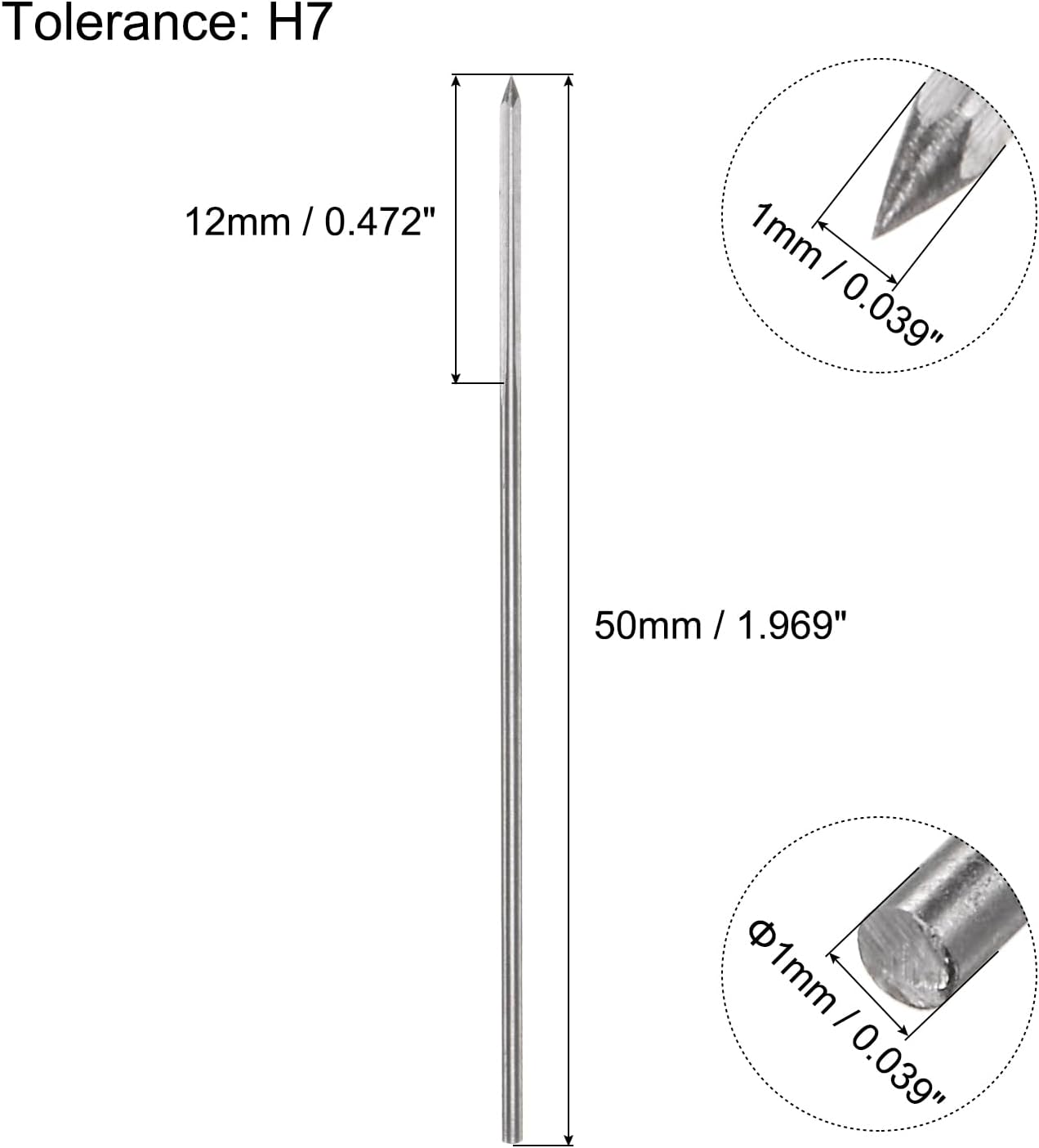Cutting Diameter: 1mm / 0.039"Tolerance: H7Cutting Flute Length: 12mm / 0.472"Shank Diameter: 1mm / 0.039"Shank Length: 32mm / 1.26"Overall Length: 50mm / 1.969"Material: High Speed Steel (HSS)Style: Straight Flute, Round ShankPackage Content: 1pcs x Machine Chucking ReamerDescriptions:Chucking reamer is designed to accurately enlarge, smooth or finish holes, and is suitable for accurate reaming in stainless steel, aluminum, copper, alloy, plastic, and wood. Widely used in hole repair work, pipe, fittings, and woodworking applications.Straight flute reamer allows chips and debris to escape easily from the hole, great for most applications in shallow cuts. Can achieve the required roundness, straightness, and concentricity of the hole.High speed steel tool offers high hardness and good toughness for wear resistance, suitable for general purpose applications. With just a base substrate (no additional coating), it is suitable for a wide range of applications.Straight shank machine reamer is used on lathes, drill presses and screw machines. Apply a cutting fluid or lubricant to the reamer and workpiece before starting the reaming process. It helps reduce friction and heat build-up, extending tool life and improving surface finish. Maintain a steady and consistent feed rate while operating the reamer.Tips: Pay attention to the chips generated during the reaming process. If chips begin to clog the reamer's chip flutes, cutting performance will be affected. Make sure the workpiece is securely clamped or held in place to minimize movement.