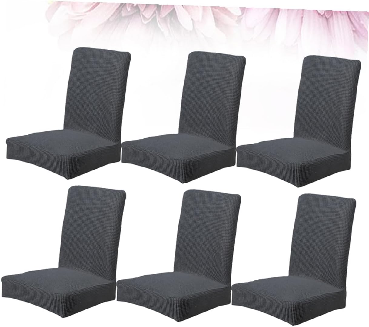 Package Include 6 covers Characteristics - Suitable for Chair Size: Thickness of chair back: within 10 cm; Chair Back Height: 46-55cm; Chair Back Width: 36-48 cm; Seat Length: 38-49cm; Seat Width 38-49cm. - Material: Polyester, spandex. -Product Info:Dining chair cover - Size: 55x49x49cm. - Color: grey. - Protect your chair , wet, scratch and etc Chair Case. - Made of spandex and polyester, flexible enough for most of chairs Stretchy Chair Cover. - It is suitable for most of dining room chairs, chairs, banquet chairs, folding chairs Elastic Cover. - Suitable various occasions, wedding, banquet, party, meeting, ceremony, etc Chair Protector. - Easy to clean, washable, convenient to use, foldable to storage.Goods InformationPolyester Chair Cover With simple design, comfortable, wrinkle resistant, machine washable, easy to wash.Elastic Cover Not only can protect your chair , wet and scratch, also can decorate your chair so well.Chair Protector This chair cover is made of spandex and polyester, flexible enough for most of chairs