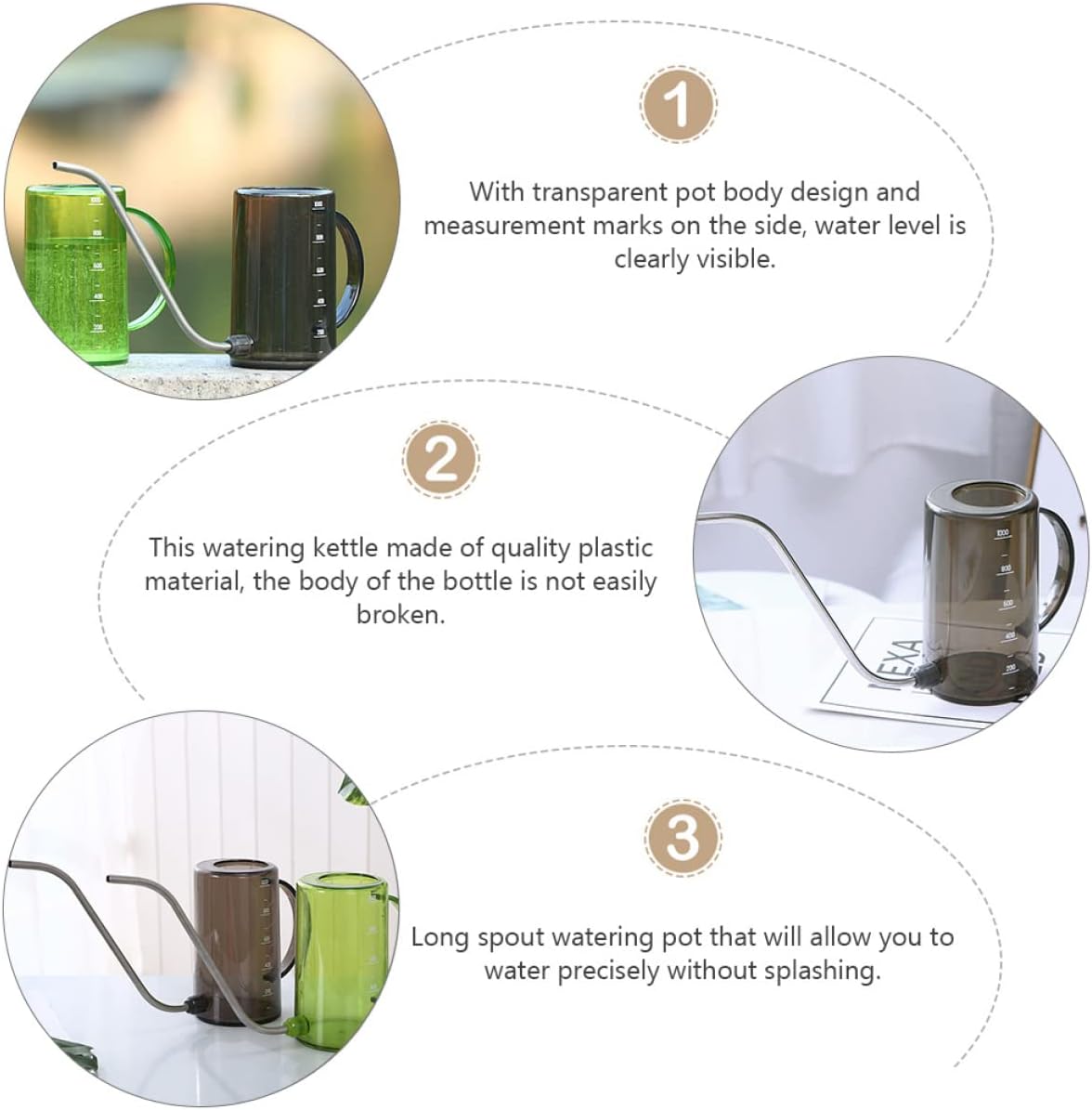 Package Include1 x kettleFeatures- With transparent pot body design and measurement marks on the side, water level is clearly visible.- With 1L large capacity design, it brings convenience to your gardening work.- This watering kettle made of quality plastic material, the body of the bottle is not easily broken.- Long spout watering pot that will allow you to water precisely without splashing.- Size: About 37.00X17.00X10.00cm/ 14.54X6.68X3.93in.- Material: Plastic and steel.- Long spout to comfortably water plants at any height.Goods InformationThis item is a long spout watering kettle, manufactured with premium material for durable and use. suitable for amateur or professional gardener since it can easily handle your watering needs. Choose one and make your life full of novelty from now on.