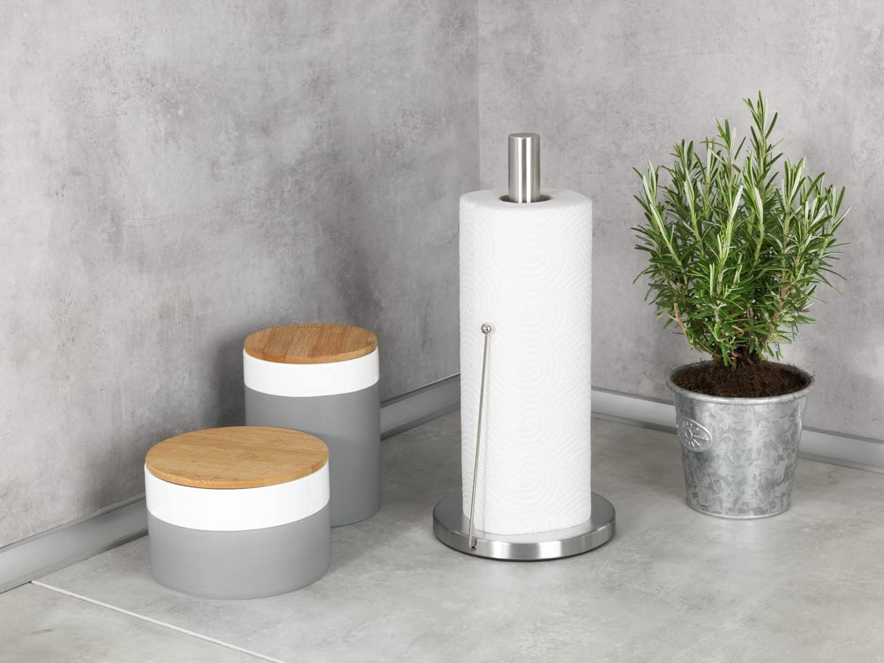 Product Description Practical kitchen roll holder, the ball prevents an unintended roll over. Dimensions (W/D x H): Ø 15 x 33 cm. Set Contains: Kitchen roll holder