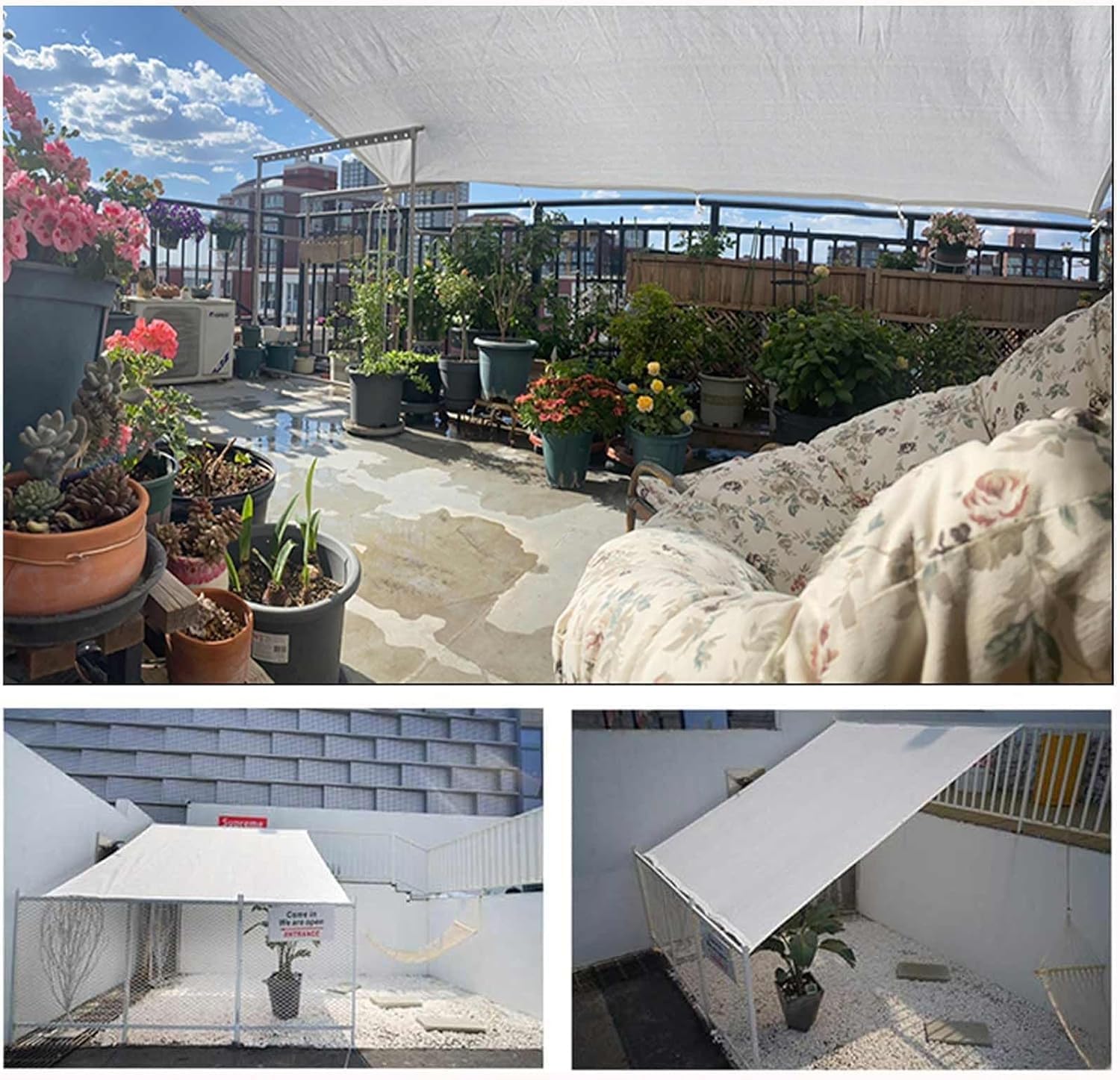 Our shading net is very suitable for terrace, porch, swimming pool, pergame, and even backyard gardens. Fashionable and lasting. In spring and summer, it can block strong ultraviolet rays, which helps prevent sunburn.Product Details:Material: PolyethyleneColor: WhiteShading rate: 55%Size: Multiple sizesFeatures: breathable, lasting, Elasticity, Tight textileProduct characteristics: After covering play a light/rain reduction role, winter and spring can also play a - certain heat preservation and humidification effect.Package:1X Shade net (The shading cloth is a shrinking material, Usually you need to order more than size than you actually need.)Notice:1. Due to the different display screens, there may be some color difference, please refer to the actual product. Thank you for your understanding.2. Due to the different measurement methods, there may be an error of 1-3cm. Please refer to the actual product. Thank you for your understanding.