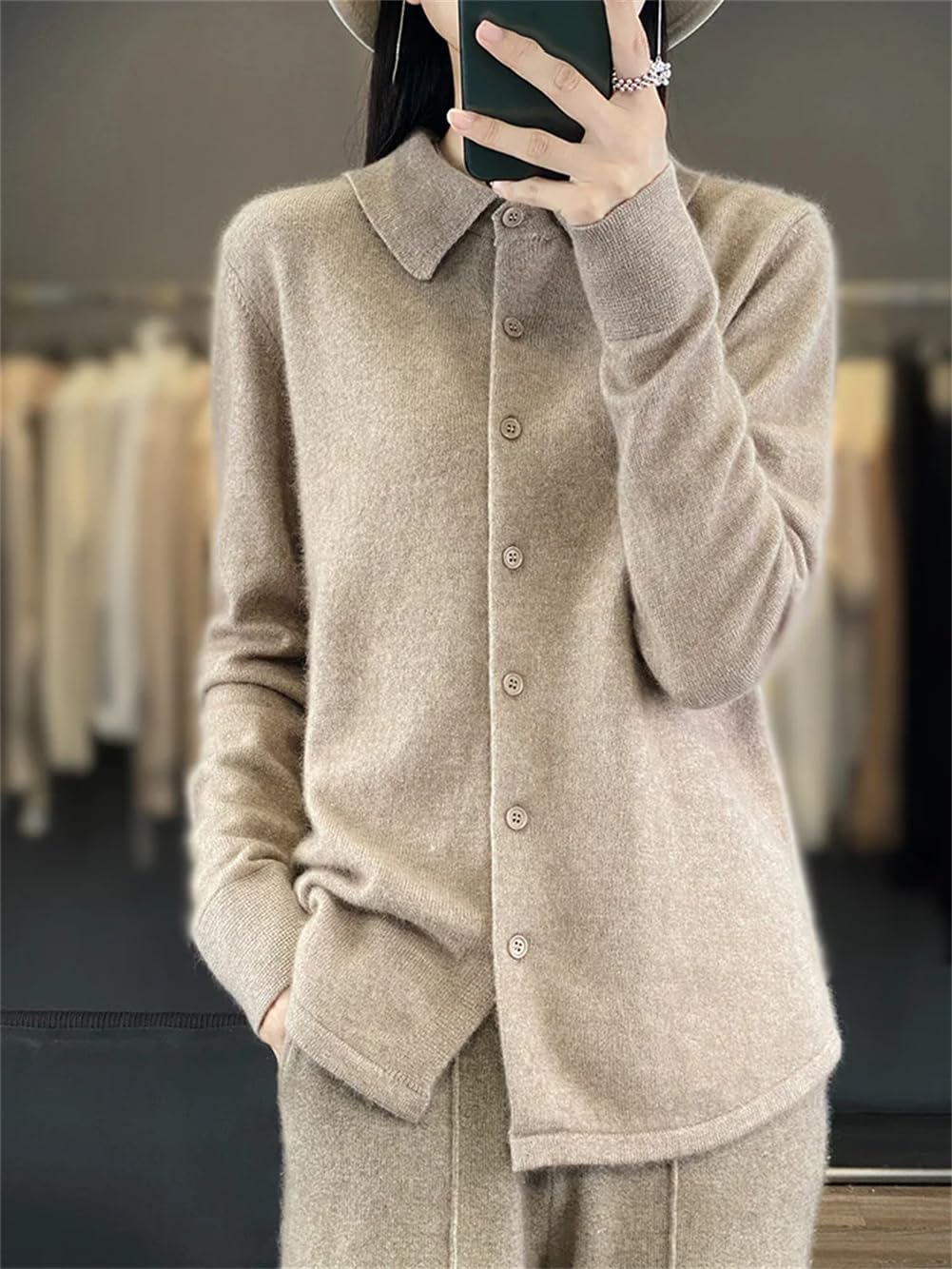 Percentage Of Material:95% AboveMaterial:Mink CashmereMaterial Composition:Mink CashmereCraft Of Weaving:KnitPattern:Loose-FittingYarn Thickness:Regular YarnSeason:Autumn/WinterAge:MIDDLE AGEThickness:StandardClosure Type:Single BreastedPattern Type:SolidGender:WOMENSleeve Length(Cm):FullStyle:CasualDecoration:NoneSleeve Style:RegularCollar:Polo CollarClothing Length:RegularElasticity:Slight StrechFit Type:Regulai Fit