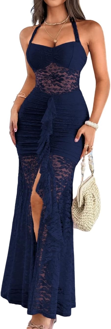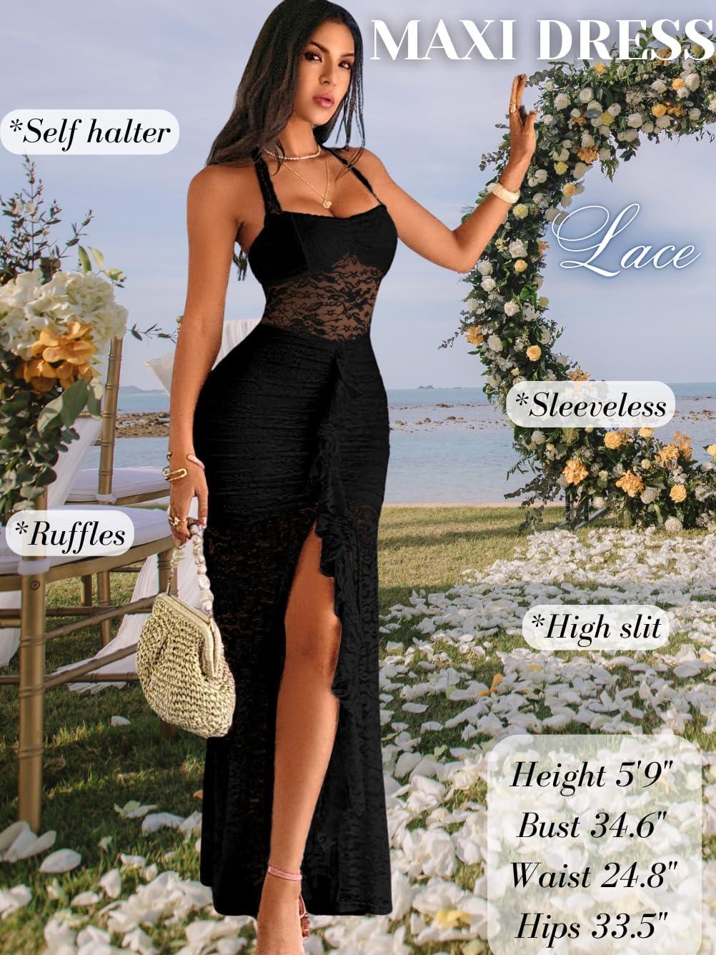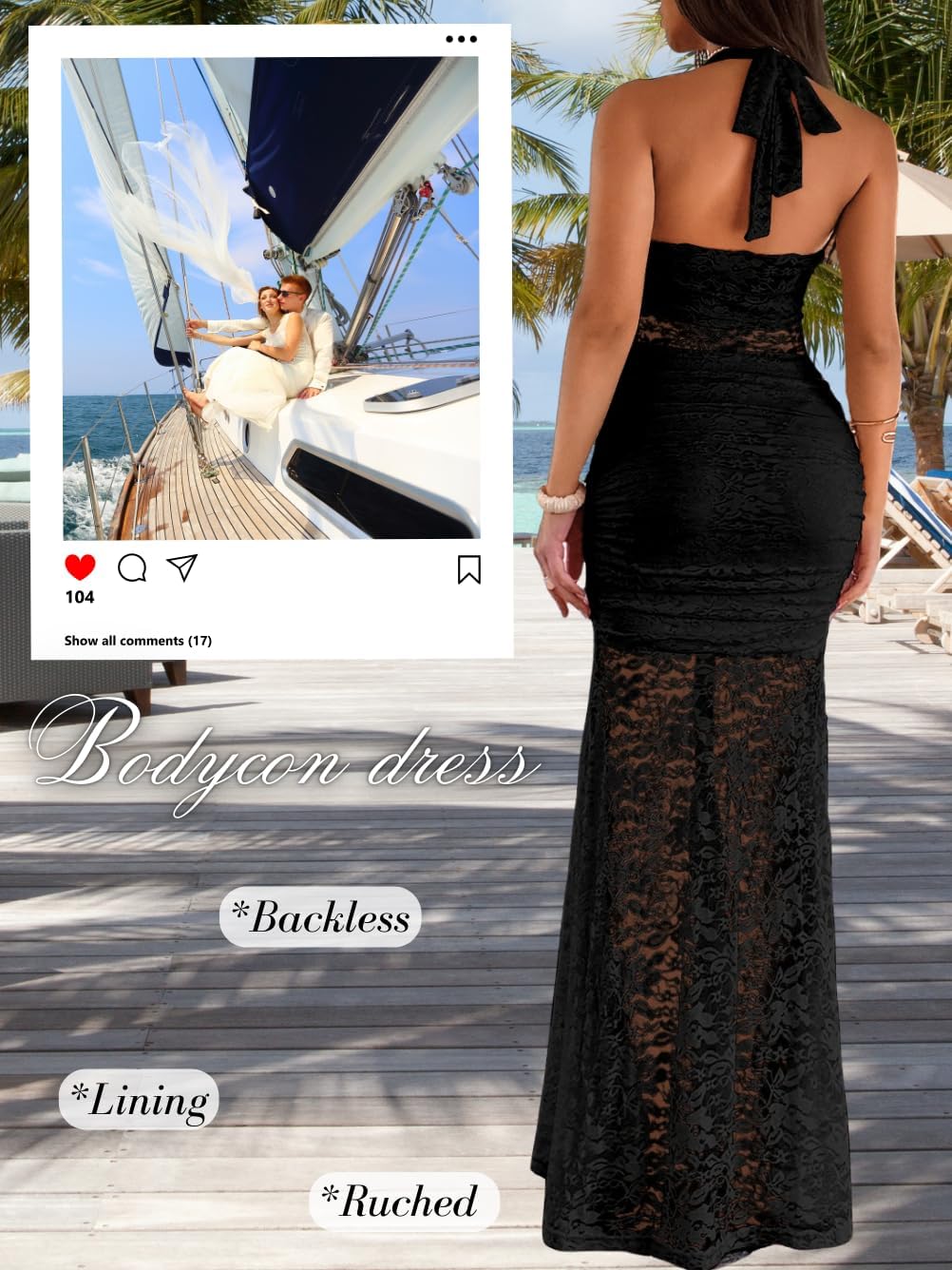 Size Note - US Size: S=0-2, M=4-6, L=8-10, XL=12. - Model is 5‘9", Bust 34.6", Waist 24.8", Hips 33.5", wearing size M. - Important: Please refer to our size chart for specific measurements. Product Q&A Q: Is this material comfortable? A: Absolutely, this dress is crafted from breathable and skin-friendly lace fabric for exceptional comfort. Q: Does it have any stretch? A: Yes, it is highly stretchy and offers a flexible, form-fitting comfort. Q: Will it shrink after washing? A: No, it is designed to maintain its size and color even after washing. Q: What's included? A: You will receive 1 dress. Care Instructions - To preserve the lace, hand wash or machine wash cold inside a mesh laundry bag. - Do not bleach. - Lay flat to dry.