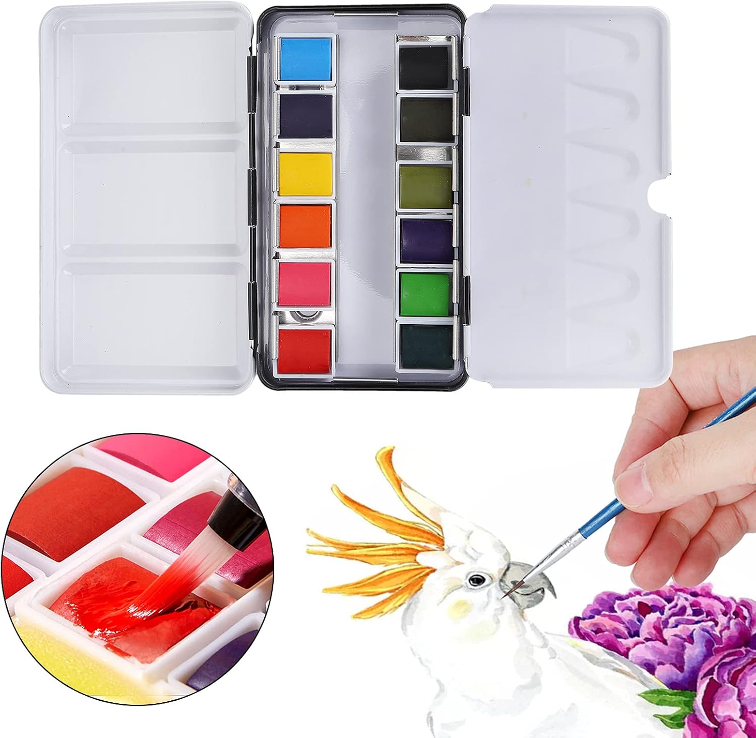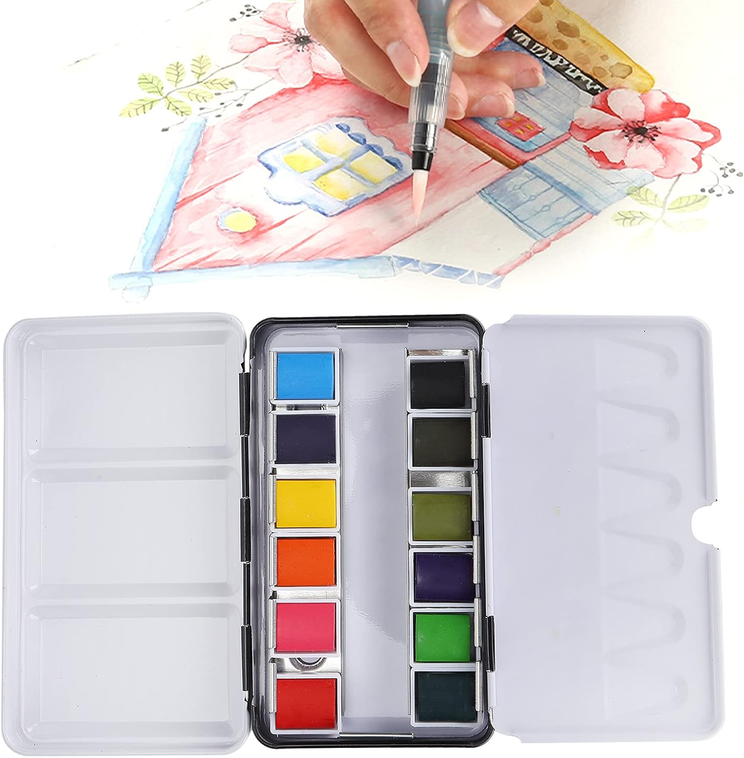 [User-friendly design] Designed for effortless use, simply add water to create beautiful watercolors.The safe and friendly formula makes it safe for artists of all ages.Enjoy simple color mixing and vibrant results without harmful chemicals, ideal for classrooms and studios. [Perfect Gift Choice] This watercolor kit is an excellent gift for students, beginners and professional artists.Its versatility and high-quality pigments make it suitable for various painting styles, from graffiti to detailed watercolors.Inspire creativity with this practical and thoughtful gift. [Versatile & Travel Friendly] Lightweight and portable, this set is designed for artists who love to paint.Take it to the countryside, train, gardens or your studio with ease.The sturdy iron box ensures your paintings remain safe and organized, making it ideal for indoor and outdoor use. [SUPERIOR QUALITY] Crafted with high quality solid watercolor pigments that resist cracking and maintain vibrant tones.These paints offer excellent water solubility for smooth mixing and fast drying, ensuring a perfect painting experience every time.Perfect for detailed artwork and professional projects. [Compact & Portable] Features a space-saving iron box and neatly displays and stores your paintings.The foldable design makes it easy to carry anywhere, whether you are traveling to the beach, park or studio.Lightweight yet durable, it is the perfect companion for artists on the go. Specifications: Condition: 100% Brand New Item type: watercolor painting Paint box material: iron Product shape: solid Iron box color: black Product use: watercolor, graffiti, etc. Applicable crowd: students, children, artists, enthusiasts